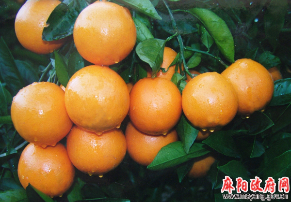 冰糖橙是20世纪60年代从普通甜橙实生变异中选出的地方良种,因其含糖量高而得名,俗称冰糖泡或冰糖柑。我县80年代中后期引进世界银行贷款开始大面积发展,现栽面积已达6万余亩,年产量4万余吨,麻阳冰糖橙因果大少核,高糖优质曾得到原中共中央总书记胡耀邦同志的高度评价,后经多年不断地提纯选优和高品质栽培研究,加上我县特殊的地理、土壤、气候、水质等自然条件,使“麻阳牌”冰糖橙外观更艳丽,品质更优良,经农业部柑桔及苗木质量监督检验测试中心检测,为极优产品,在全国独树一帜。2001年获湖南省第三届农博会金奖。产品市场覆盖面广,销往上海、广州、昆明、武汉、北京和重庆等100多个大中城市及港澳地区,俄罗斯、蒙古、越南等国也有销售,麻阳被“中国林业年鉴”誉为——中国冰糖橙之乡。