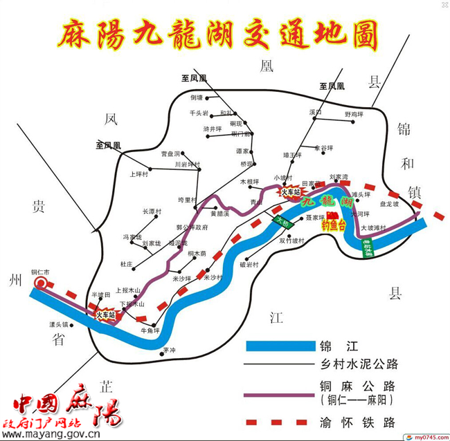 九龙湖位于麻阳苗族自治县郭公坪乡境内,面积近万亩,是发源于梵净山的锦江河一段。九龙湖区青山绵延,林木繁茂,拥有最好的原生态次森林,鸟语花香,生态环境十分优良,负氧离子每立方厘米高达2万个,属“森林维生素”的天然氧吧。湖水晶莹透澈,达到国家一级饮用水,库湾幽深多姿,自然风光旖旎,小桥流水,生态野趣横生。擎天柱、好汉坡、流纱瀑布、古村落民居等自然风光尽在湖区,为中国最美养生栖居地,是怀化、吉首、铜仁等地首选避暑度假胜地。