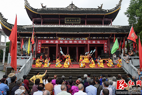 祭祖仪式后,在盘瓠大王殿外的广场,举行了形式多样的民俗文艺活动。麻阳花灯戏剧团、吉祥乐队、漫水舞蹈队等多支文艺队伍带来花灯戏、盘瓠龙舟号子等多个节目,让台下数百名观众看了个够。