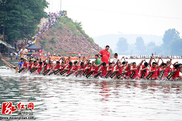 “嗨吼!嗨吼!千里水路嗨,一线纤哈!加油摇嗨,攒劲扳哈!打起精神嗨,冲险滩哈……” 84岁的黄宝善左右脚一前一后跨成弓步,嘴里高声喊着号子,精神头十足。两艘摇橹船在热烈的号子声中驶向锦江河上游,来自黄桑乡湖池村和吕家坪镇木江溪村的32位老船手的,双手快节奏地来回扳动船橹,稳健有力。两艘龙船就在两侧锣鼓竞舟,两岸群众的加油呐喊声此起彼伏。