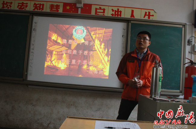 消防安全知识宣传员余尧教官运用朴实鲜活的语言,让消防安全知识经过讲座、现场器材演示、现身说法等形式给所有在场的老师上了一堂生动的安全教育课,切实提高了该校全体教职员工的消防意识,增强了消防应急处置能力。